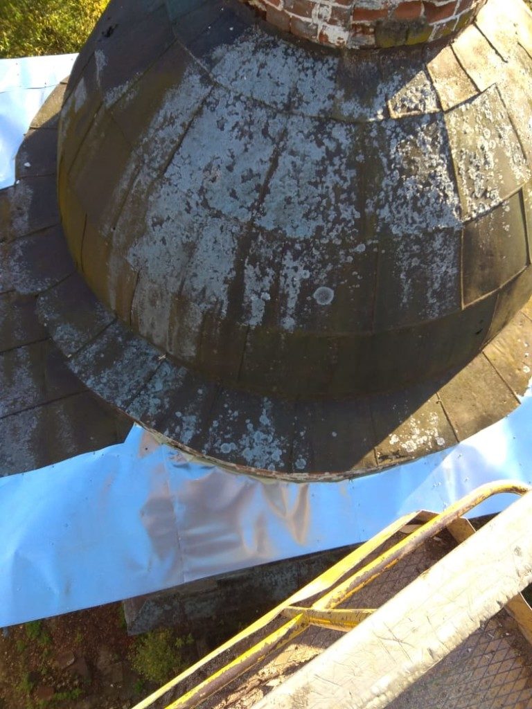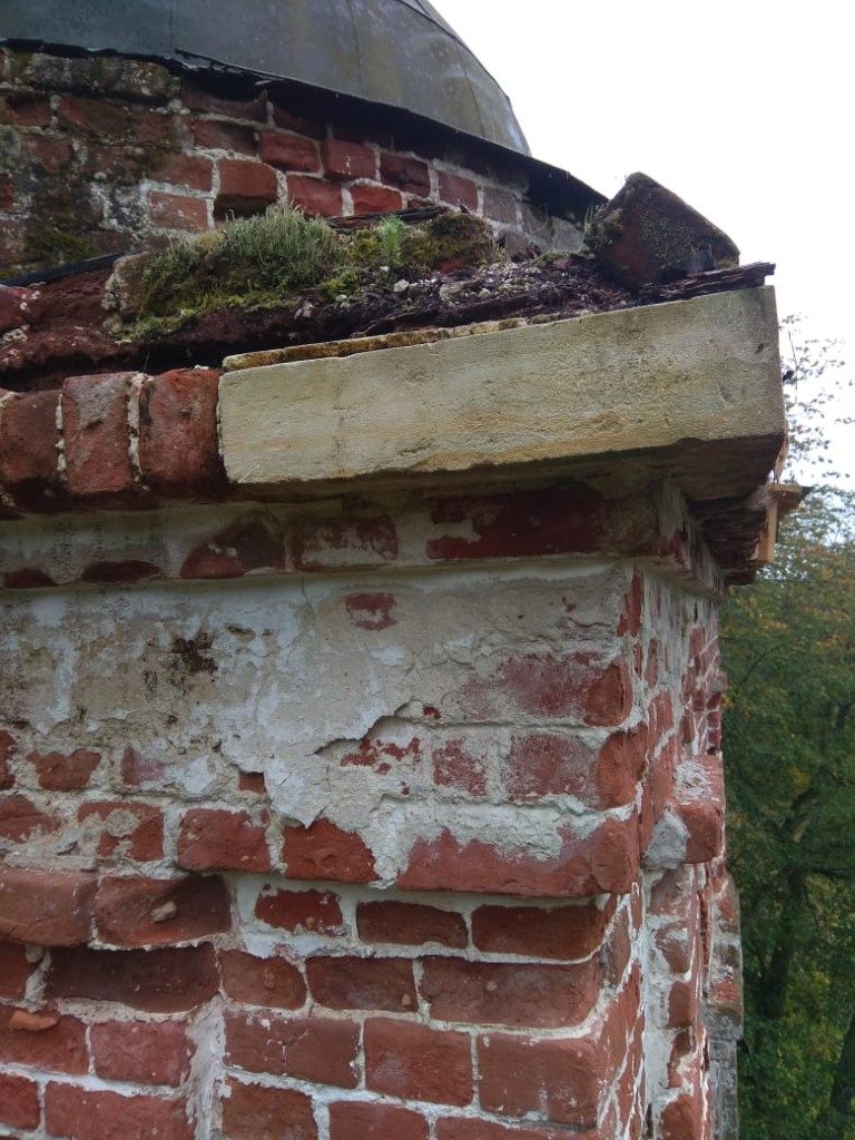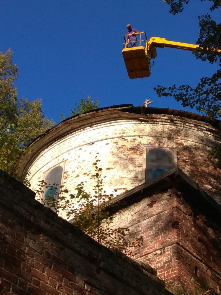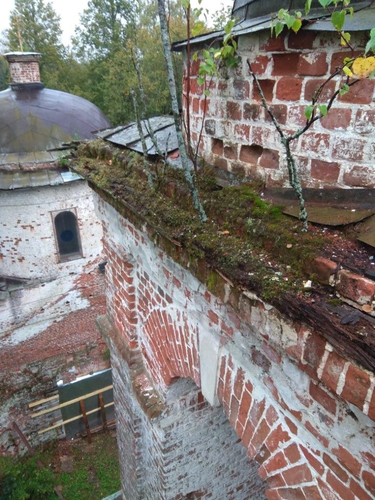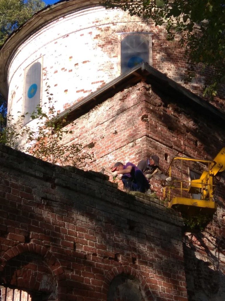 Консервационные работы на северной и восточной сторонах колокольни храма, начало октября 2018 года
