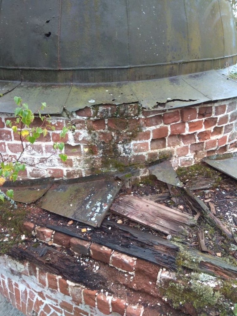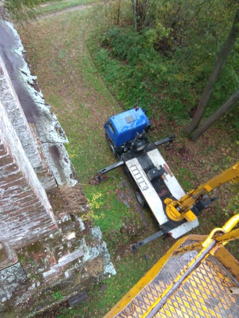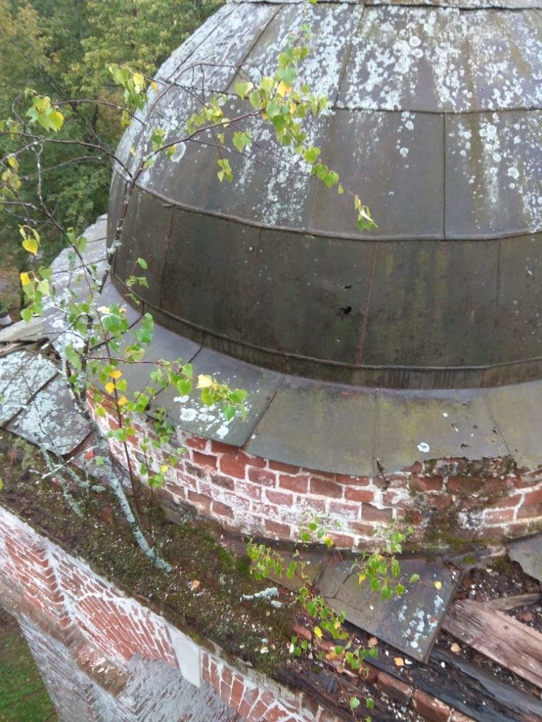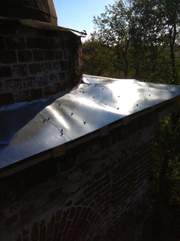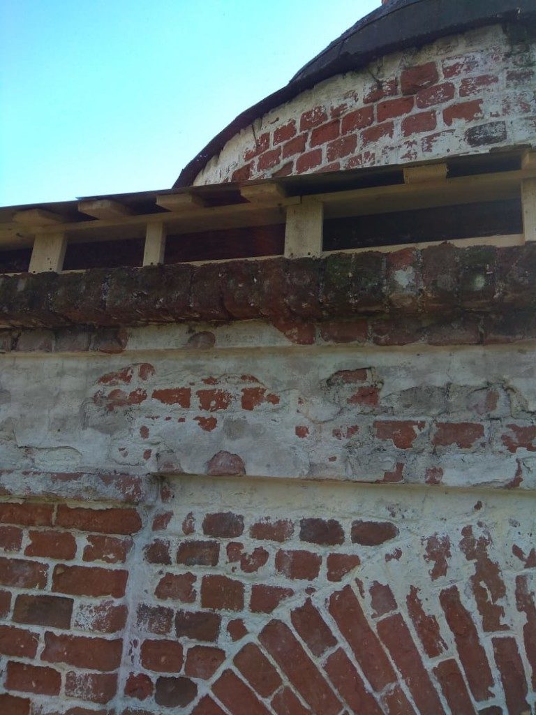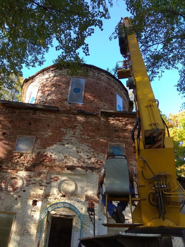 Консервационные работы на северной и восточной сторонах колокольни храма, начало октября 2018 года