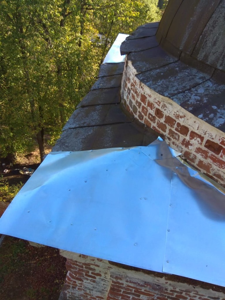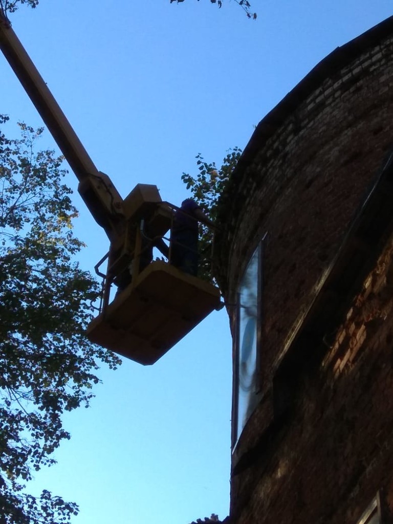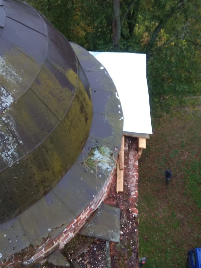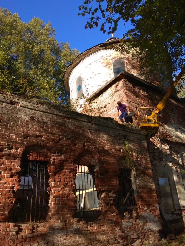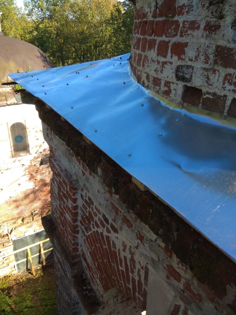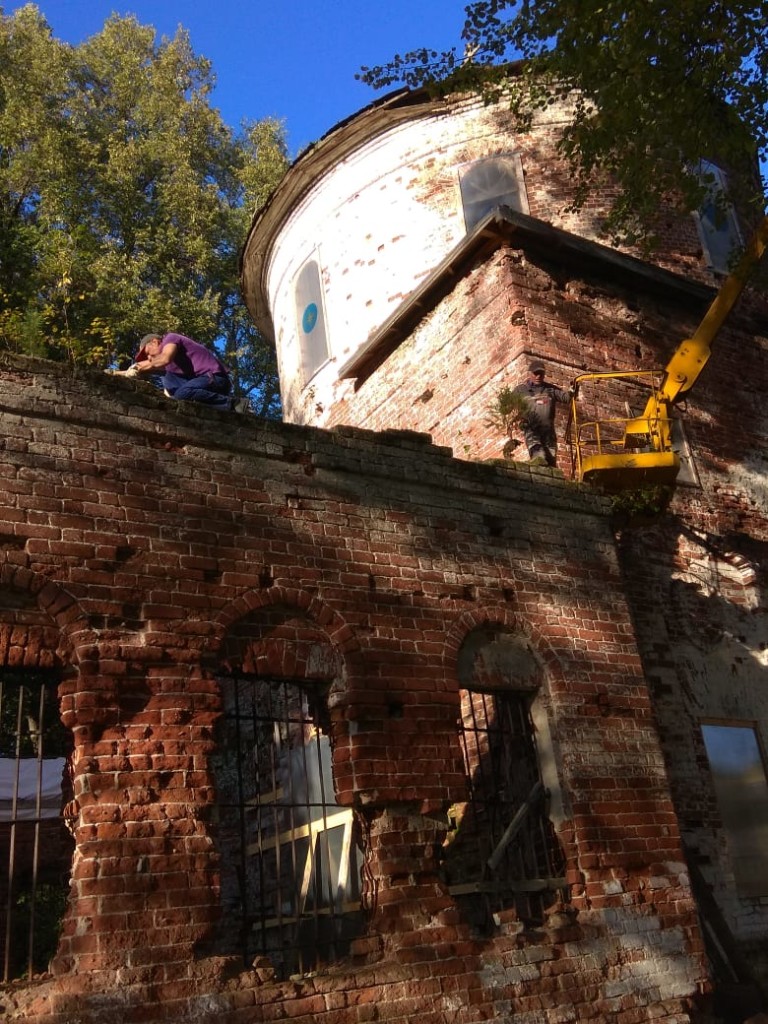 Консервационные работы на северной и восточной сторонах колокольни храма, начало октября 2018 года