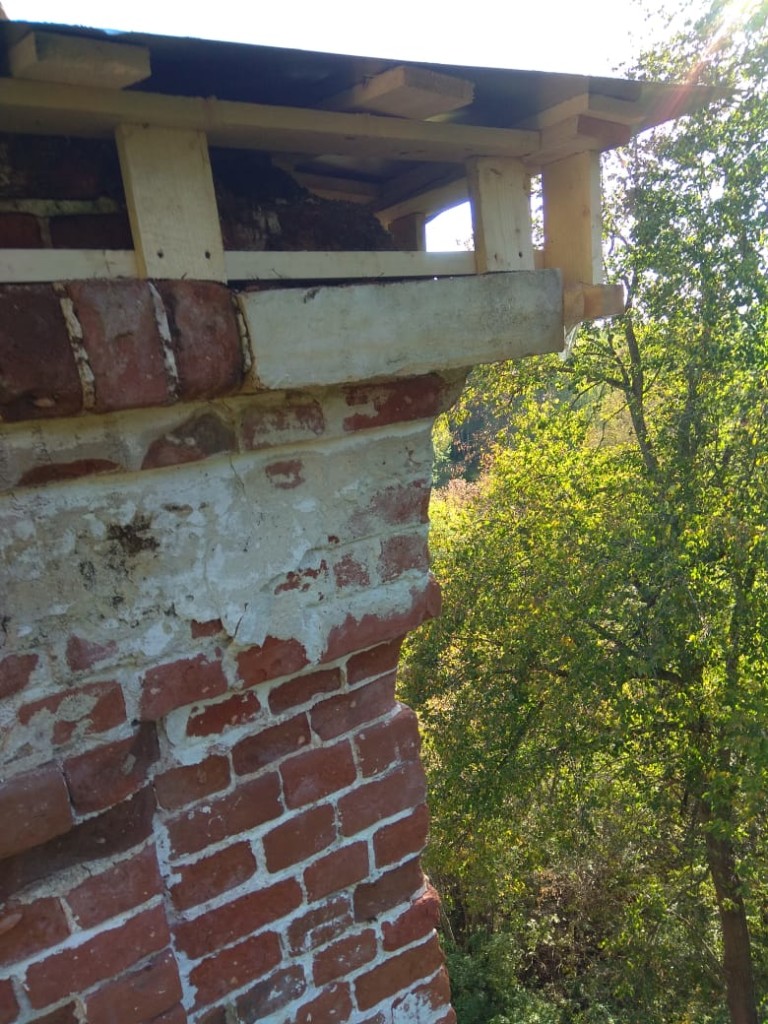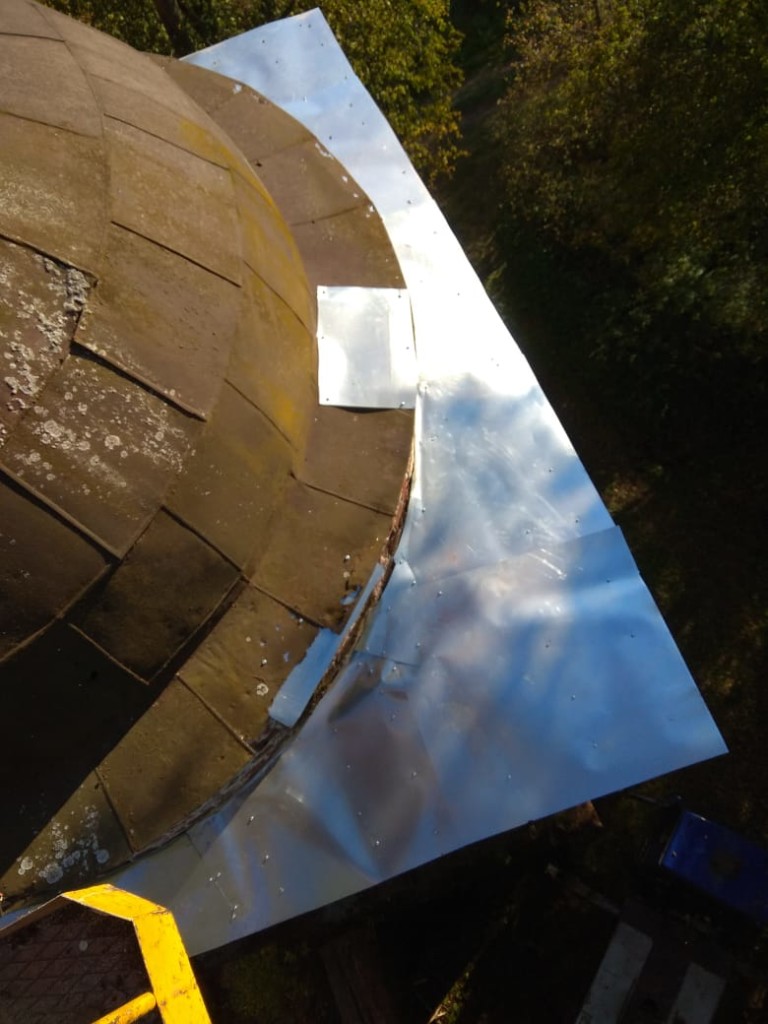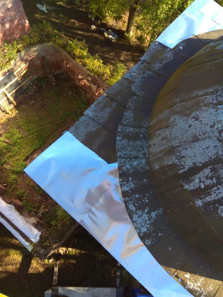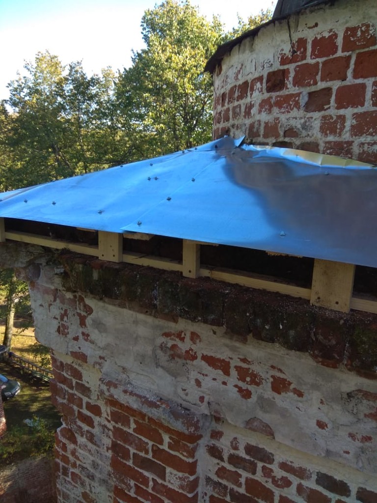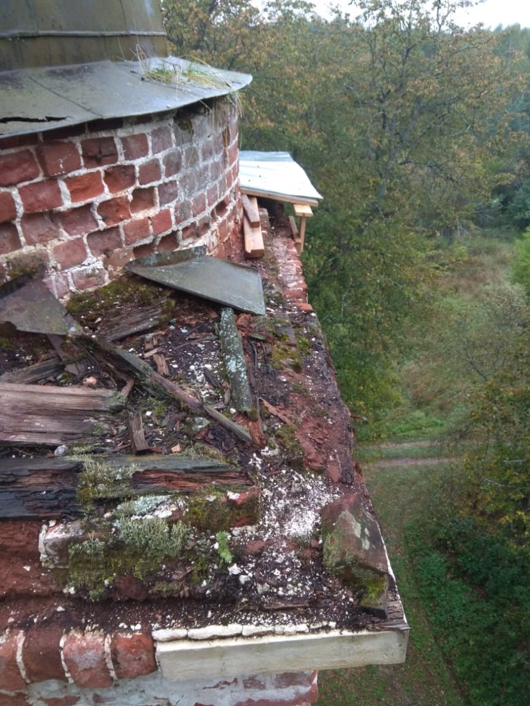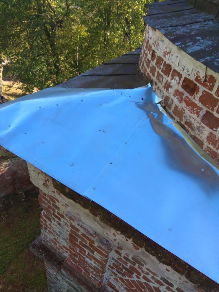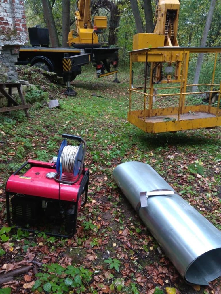 Консервационные работы на северной и восточной сторонах колокольни храма, начало октября 2018 года